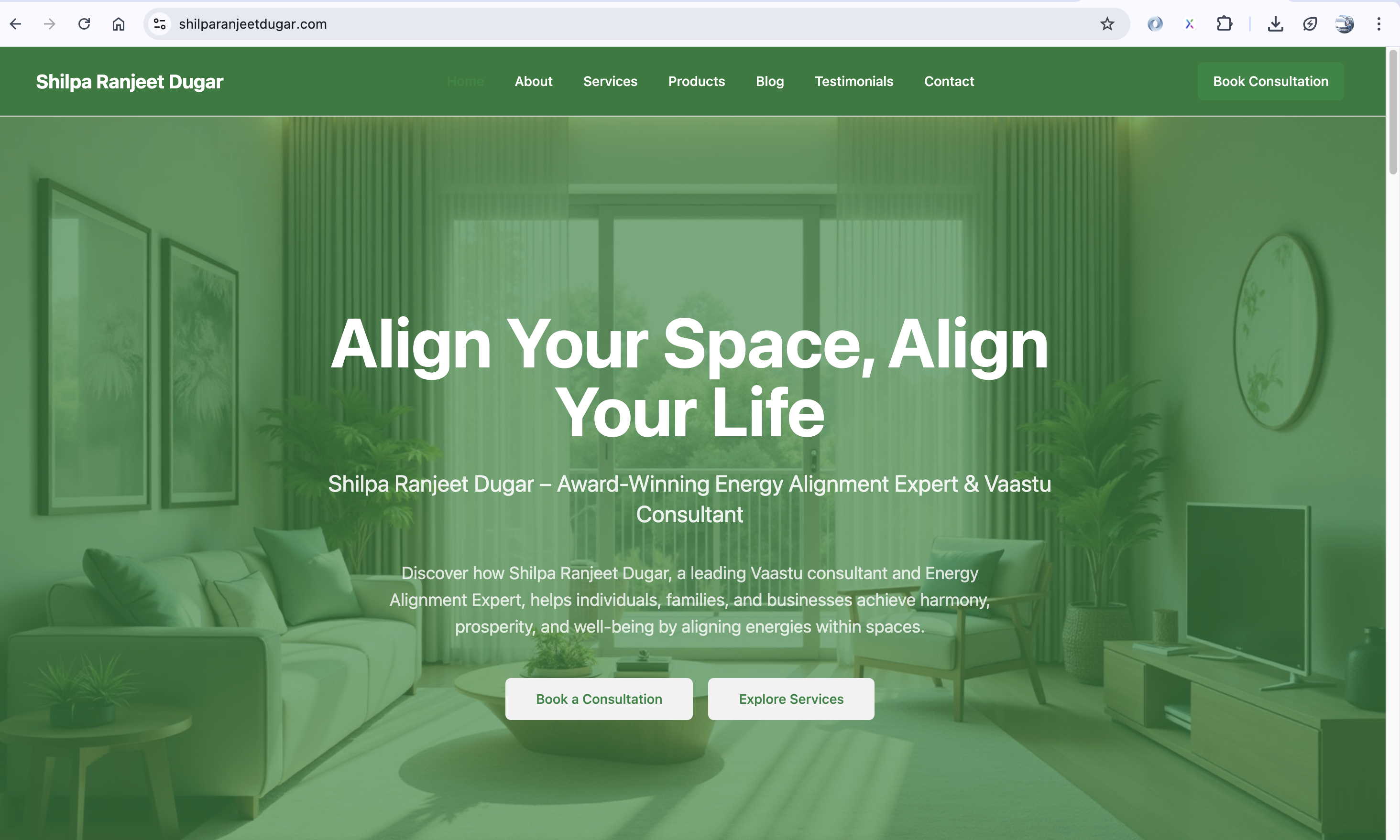 Personal Portfolio Website | Shilpa Ranjeet Dugar Personal Portfolio website for a leading Vaastu consultant and Energy Alignment Expert based in Coimbatore, India.